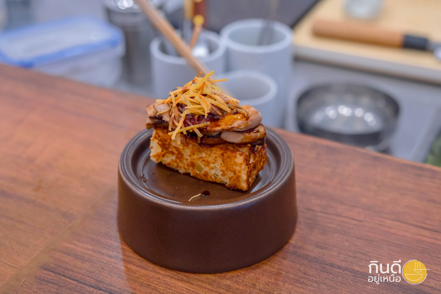 Foie Gras Toast ฟัวกราส์ย่างบนขนมปังคำพอดี กลิ่นหอม กินแล้วละลายในปาก เป็นอีกคำที่หลายคนบอกว่าดีจนต้องเบิ้ล