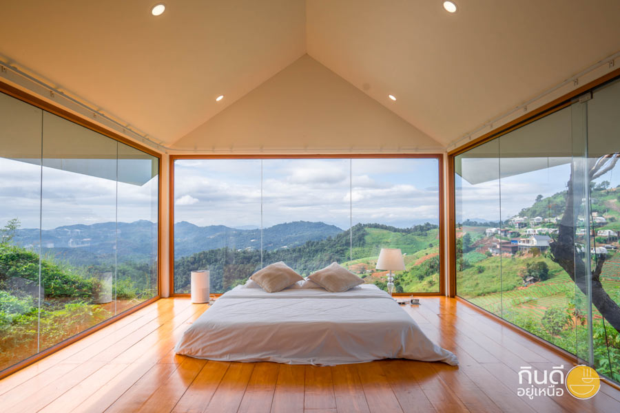 ไฮไลท์คือห้องนอนที่มีกระจกรอบด้านทำให้สามารถนั่งชมวิวได้จากทุกมุมแบบเต็มตาเต็มใจมากๆ นอนชมวิวฟินๆ กันทั้งตอนนอนและตอนตื่นไปเลย!