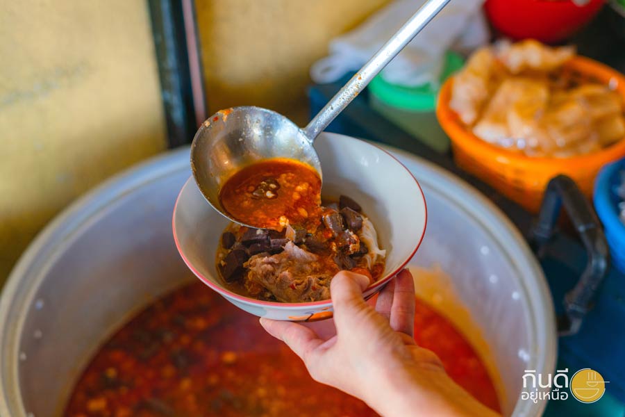 ขนมจีนกั๊ดจัง ร้านขนมจีนเขียงใหม่ เจ้าเด็ดในย่านเจ็ดยอด ที่หลายคนยกให้เป็นหนึ่งในร้านขนมจีนที่อร่อยที่สุดในเชียงใหม่ จุดเด่นอยู่ที่ น้ำเงี้ยว สูตรต้นตำรับจากเมืองป้าว รสเข้มข้นถึงใจ เครื่องแน่นแบบจัดเต็ม ทั้งกระดูกหมู เลือด ลูกชิ้น และเนื้อหมูเคี่ยวจนเปื่อยนุ่ม กินคู่กับเส้นขนมจีนเหนียวนุ่มเข้ากันสุดๆ นอกจากน้ำเงี้ยว ยังมี น้ำยากะทิ แกงเขียวหวาน และ ข้าวซอยไก่ ที่ให้น่องไก่ชิ้นโตจุใจ เรียกว่ามาร้านเดียวได้ครบทั้งความอร่อยและความคุ้ม ใครเป็นสายขนมจีนต้องลองร้านนี้สักครั้ง
