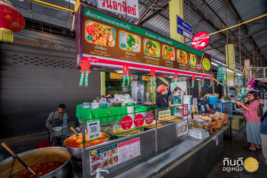 ขนมจีนสันป่าข่อย ร้านขนมจีนเชียงใหม่ ระดับตำนาน ที่ได้รางวัลมิชลินไกด์ 3 ปีซ้อน การันตีความอร่อยจากทั้งคนท้องถิ่นและนักท่องเที่ยว ร้านนี้มีน้ำยาขนมจีนให้เลือกถึง 6 อย่าง ไม่ว่าจะเป็น น้ำเงี้ยว น้ำยากะทิ แกงเขียวหวานไก่ แกงเผ็ดเนื้อ หรือ แกงเผ็ดหมู บอกเลยว่าเข้มข้น กลิ่นหอมและให้เครื่องแน่นทุกจาน