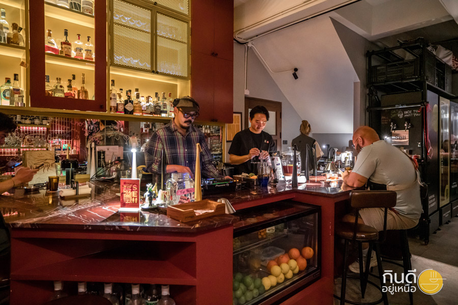 ทันทีที่นั่งลงที่บาร์ ก็จะสัมผัสได้ถึงบรรยากาศที่กึ่งอบอุ่นกึ่งเท่ ภายในร้านมีการจัดแสงแบบ Warm Light แสงไฟสลัวๆ ที่ทำให้บาร์ดูน่าค้นหา เหมาะมากกับการมาเดทหรือนั่งเม้าท์มอยกับแก๊งเพื่อน